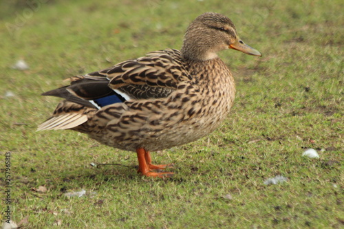 Female brown duck in the grass in a public park in Nieuwerkerk aan den IJssel in the Netherlands