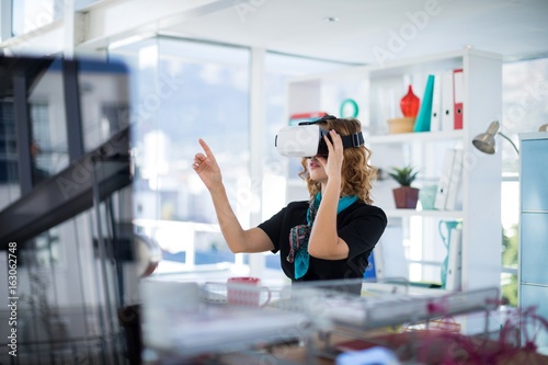 Female designer using virtual reality headset