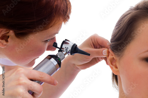 female doctor examinating a patient's ear