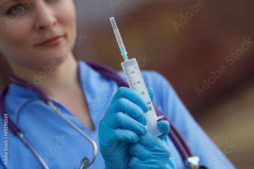 female doctor holding a syringe