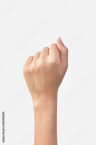 Female hand on white background