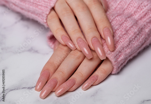 Female hands with pink nail design