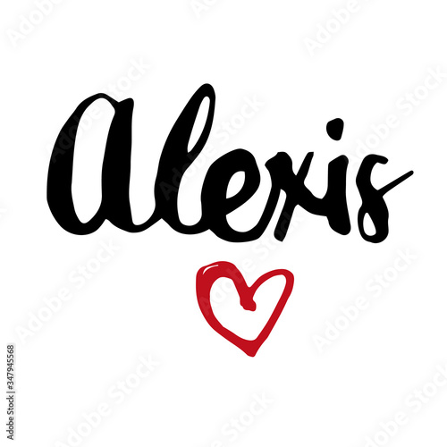 Female name drawn by brush. Hand drawn vector girl name Alexis.