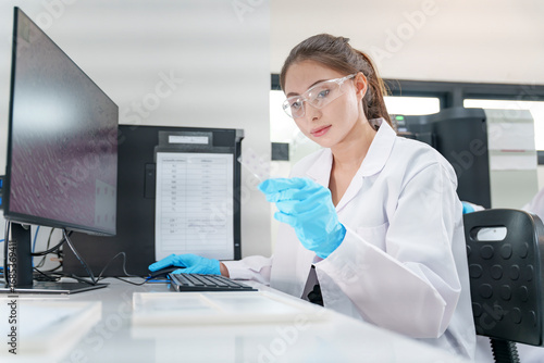 Female scientist conducts research in modern laboratory during daytime work hours
