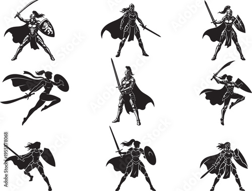 Female Warrior Armed Fighter Strong Pose Silhouette