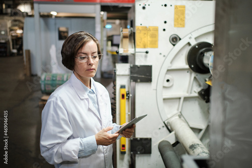 Female worker using tablet at the factory