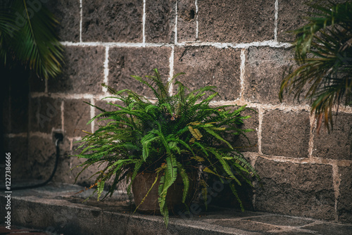 Fern plant in a big pot inside Intramuros Manila.