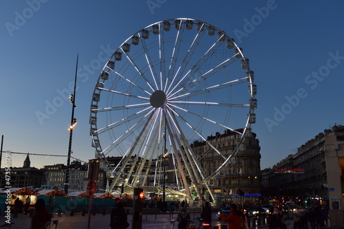 Ferris wheel installed in France in Marseille at the Vieux Port for the christmas festive season. The wheel is located behind the Christmas Market.