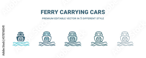 ferry carrying cars icon in 5 different style. Outline, filled, two color, thin ferry carrying cars icon isolated on white background. Editable vector can be used web and mobile