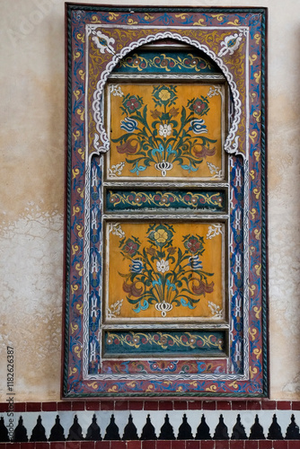 Fes, Morocco. Hand painted door panel in with floral design