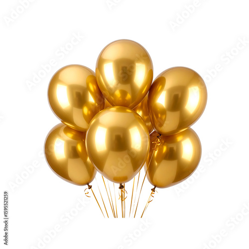 Festive bunch of lustrous golden balloons for celebration event on transparent background