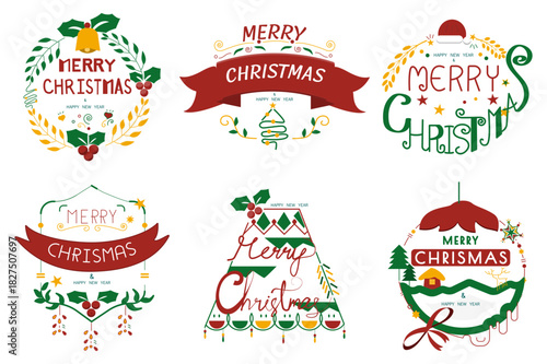 festive Christmas and New Year 2026 illustration featuring wreaths, lettering, and decorative elements arranged in joyful design for holiday cards banners and celebration graphics.