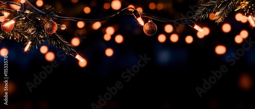 Festive Christmas Lights Ornaments on Pine Branch