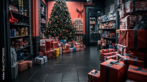 Festive Christmas Shop Interior Tree Gifts Decorations
