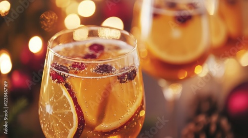Festive cranberry and orange bubbly drink in a stemmed glass. Perfect for holiday celebrations!