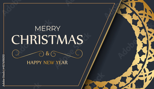Festive flyer merry christmas dark blue color with abstract gold ornament