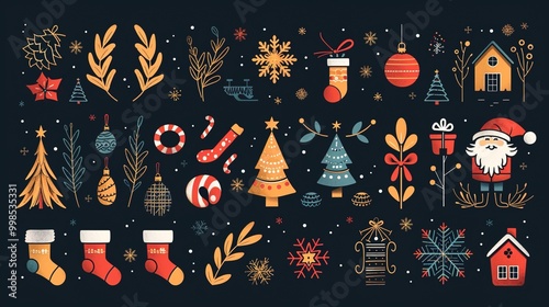 Festive Fusion: A Hand-Drawn Collection of Charming Christmas Elements for a Magical Holiday Celebration