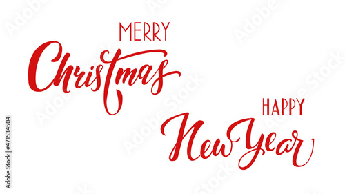 Festive greeting with New Year and Merry Christmas using letters of original shapes.