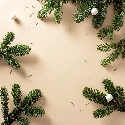 Festive pine branches arranged on a neutral background for holiday decoration or crafting projects