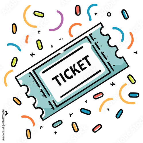 Festive ticket with confetti and streamers for celebration and winning