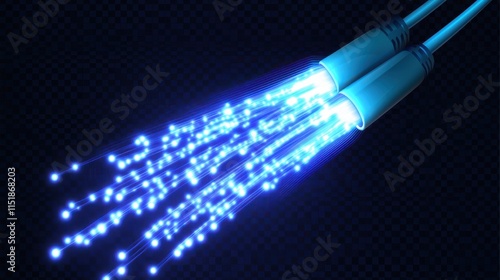 Fiber optic cables transmitting vibrant blue light in a dark environment with a technology-focused aesthetic