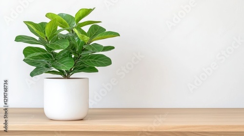 Fiddle Leaf Fig Plant on Wooden Shelf