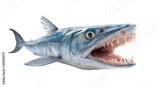 Fierce barracuda with open mouth and sharp teeth. transparent background
