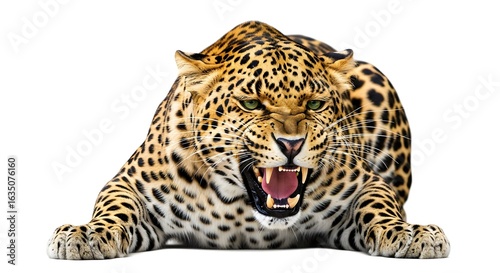 Fierce Leopard Growling on White Background