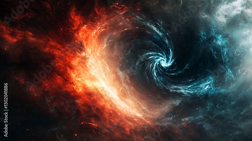 Fiery And Icy Cosmic Spiral Nebula In Deep Space