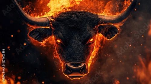 Fiery Bull: A Digital Painting of a Bull Enveloped in Flames
