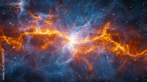 Fiery Cosmic Nebula with Orange and Blue Hues