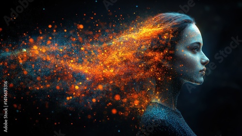 Fiery, digital portrait of a woman