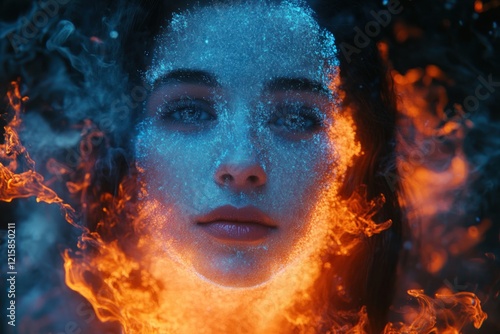 Fiery Dualities: A Woman Embraces the Contrasts of Ice and Fire