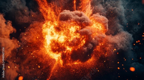 "Fiery Eruption: Dramatic Explosion Scene with Flames and Smoke"