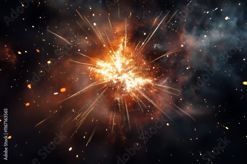 Fiery Explosion Of Sparks And Smoke In The Night Sky