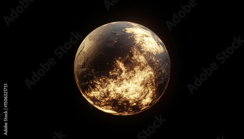 Fiery, golden sphere in space