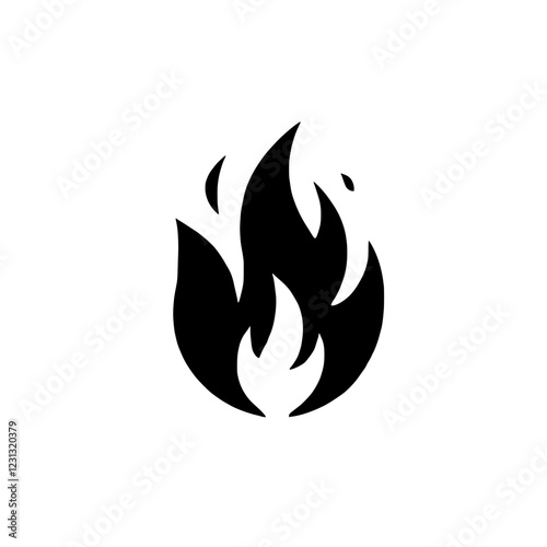 Fiery Icon: A simple, yet powerful black and white silhouette of a flame, a symbol of passion, energy, and power, isolated against a clean background.