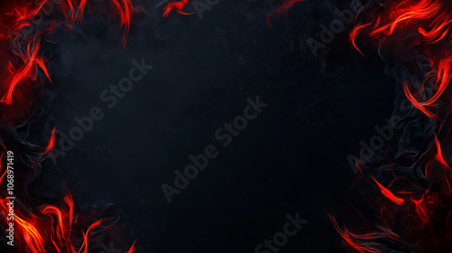 Fiery lava texture frame on dark background. Border, postcard, banner, card. Empty copy space for design.