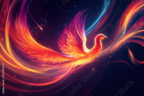 Fiery phoenix soaring, cosmic trails, night sky, fantasy art, design