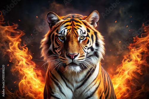 Fiery Tiger Roaring in Flames - Fierce Wild Animal Portrait for Nature and Wildlife Enthusiasts
