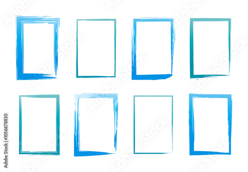 筆 四角 縦長 縦 フレーム 手書き 水色 グラデーション 和風 セット