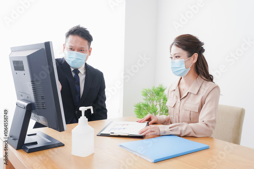 感染症対策をしてオフィスで働くビジネスパーソン
