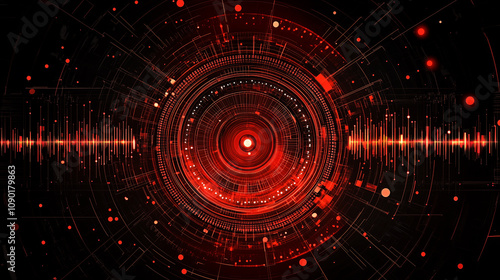 デジタルとテクノロジーを赤く光るコアと周辺のリングで表現したイラスト背景画像