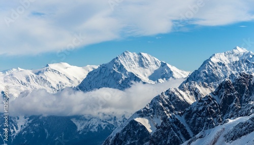 산봉우리 위로 하얀 눈과 함께 흐릿하게 드리운 구름