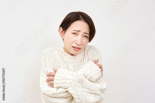 寒気を感じる女性 白背景