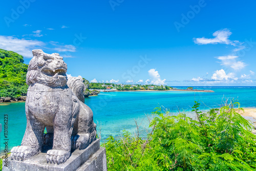 シーサーと沖縄の海