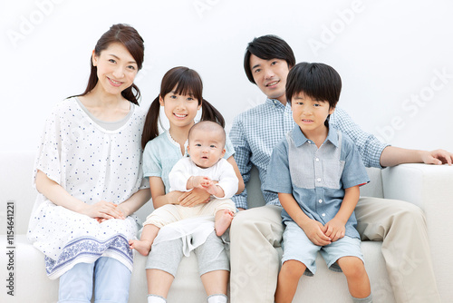 ソファに座る家族