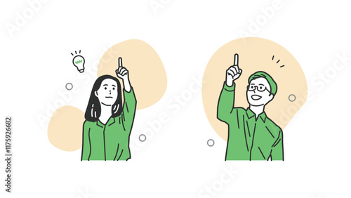 指差しするオフィスカジュアルの男女