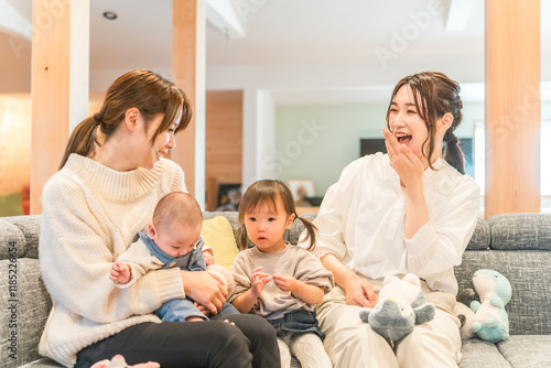 キッズスペースで遊ぶ親子・ママ友・子供(幼児)