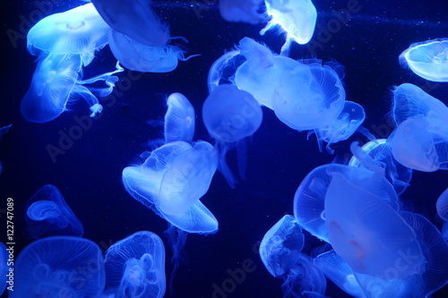 クラゲ 幻想的な 美しくライトアップされた